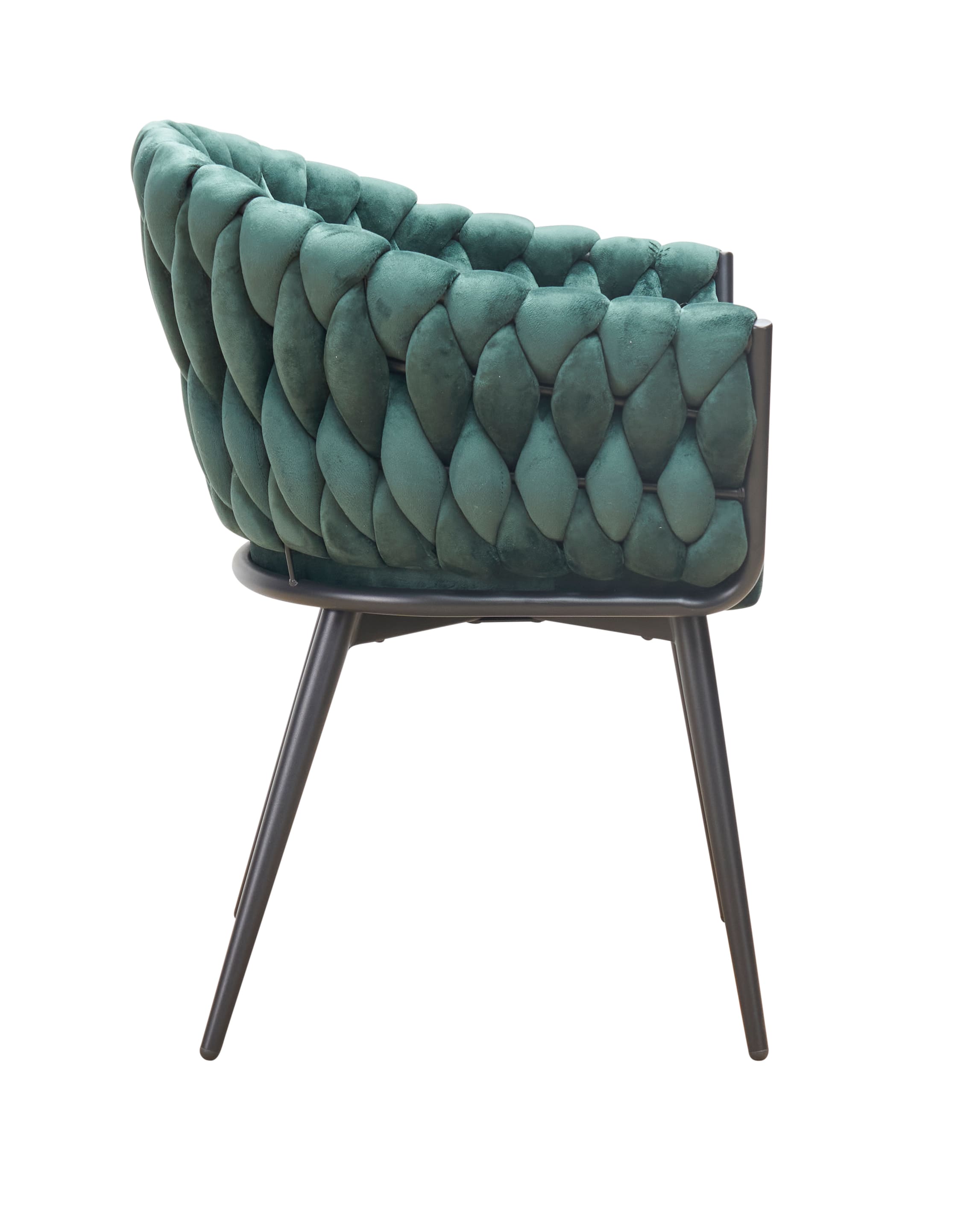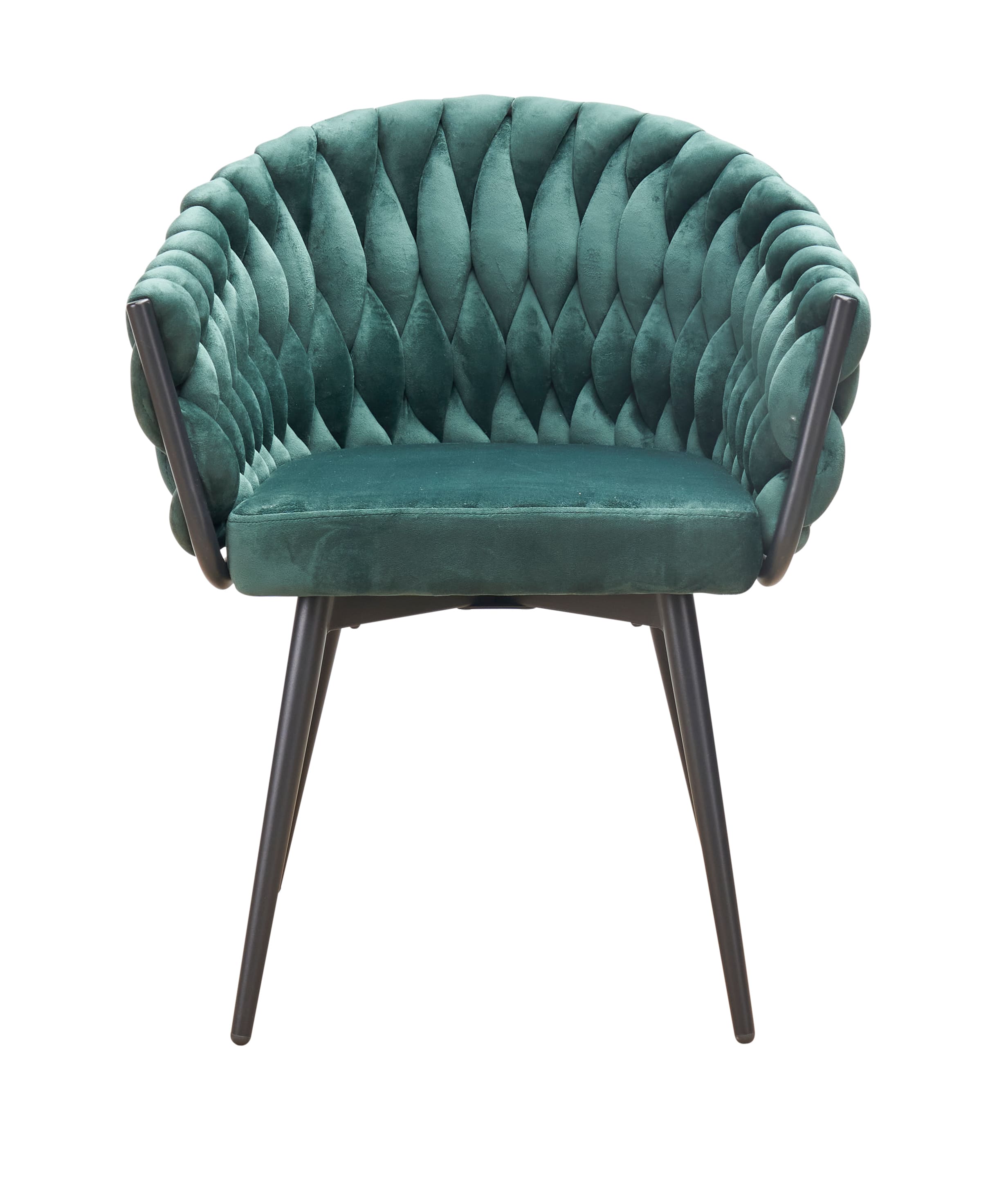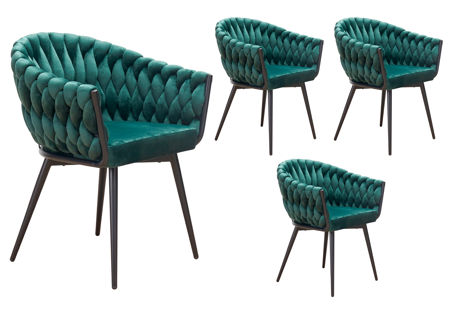 LC Home 4er Set Esszimmerstuhl »Remy« Flechtoptik Samt grün Armlehnstuhl Designerstuhl