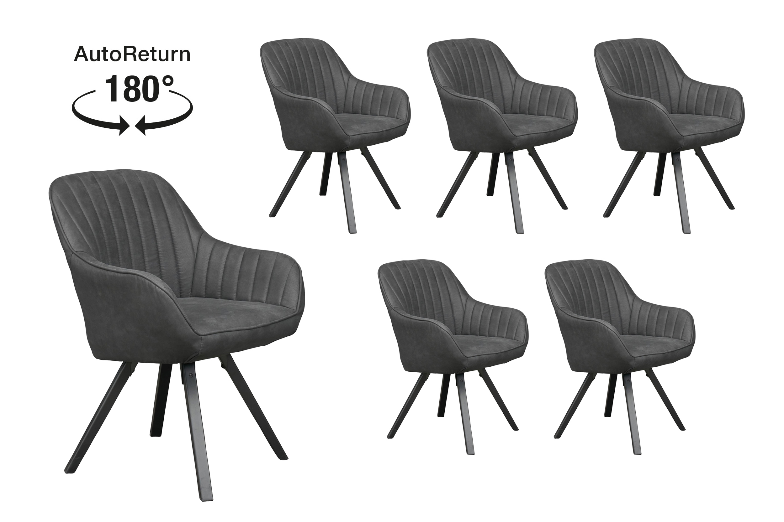 LC Home 6er Set Esszimmerstuhl Drehstuhl »Trevina« Microfaser anthrazit Polsterstuhl