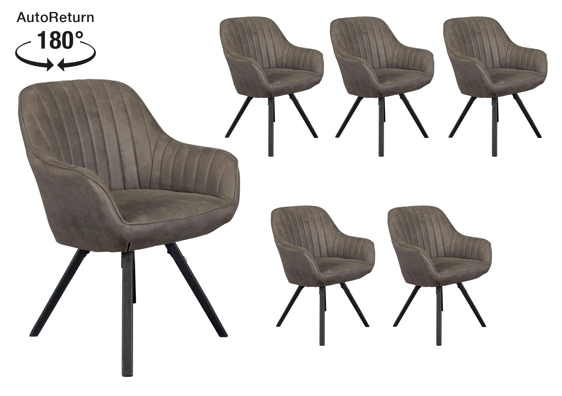 LC Home 6er Set Esszimmerstuhl Drehstuhl »Trevina« Microfaser dunkelgrau Polsterstuhl