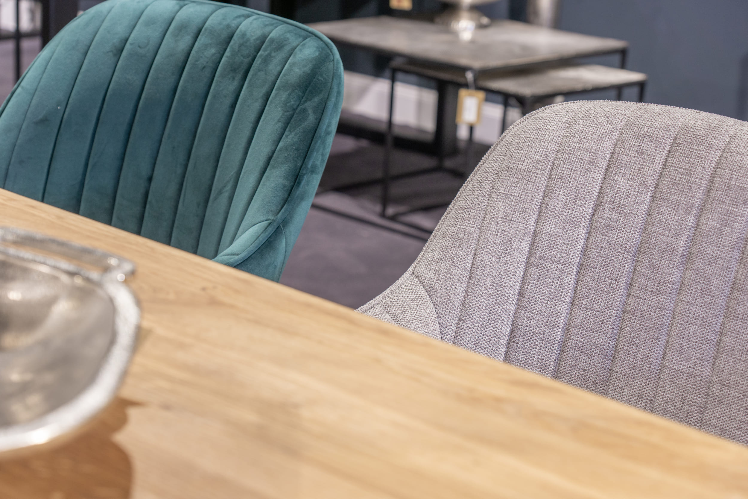- Rückenlehne und Sitzfläche mit Samtbezug mit modernen Ziernähten