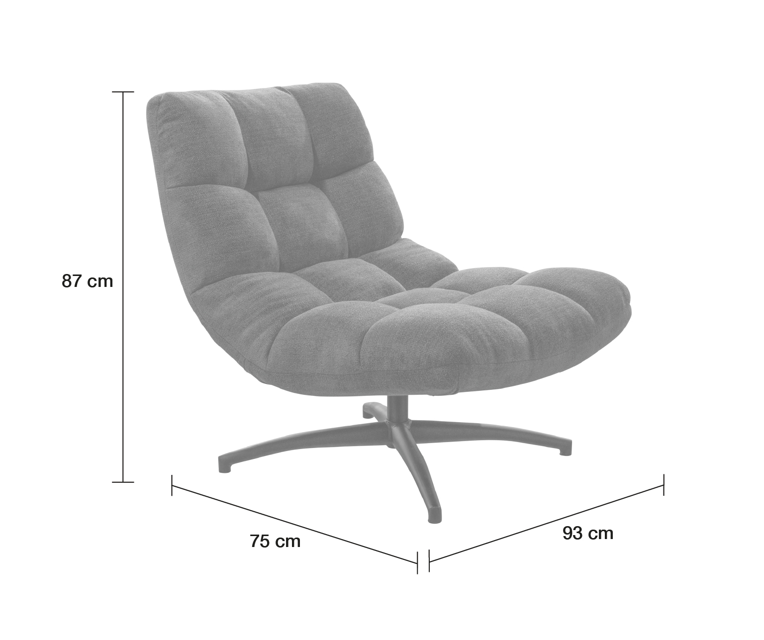 Die bequeme Polsterung und die ergonomisch geformte Sitzschale bieten besten Sitzkomfort – perfekt für entspannte Stunden mit einem Buch, bei Gesprächen oder einfach zum Wohlfühlen. Dank der Drehfunktion genießt du volle Bewegungsfreiheit, während das stabile Metallgestell sicheren Halt und Langlebigkeit garantiert.