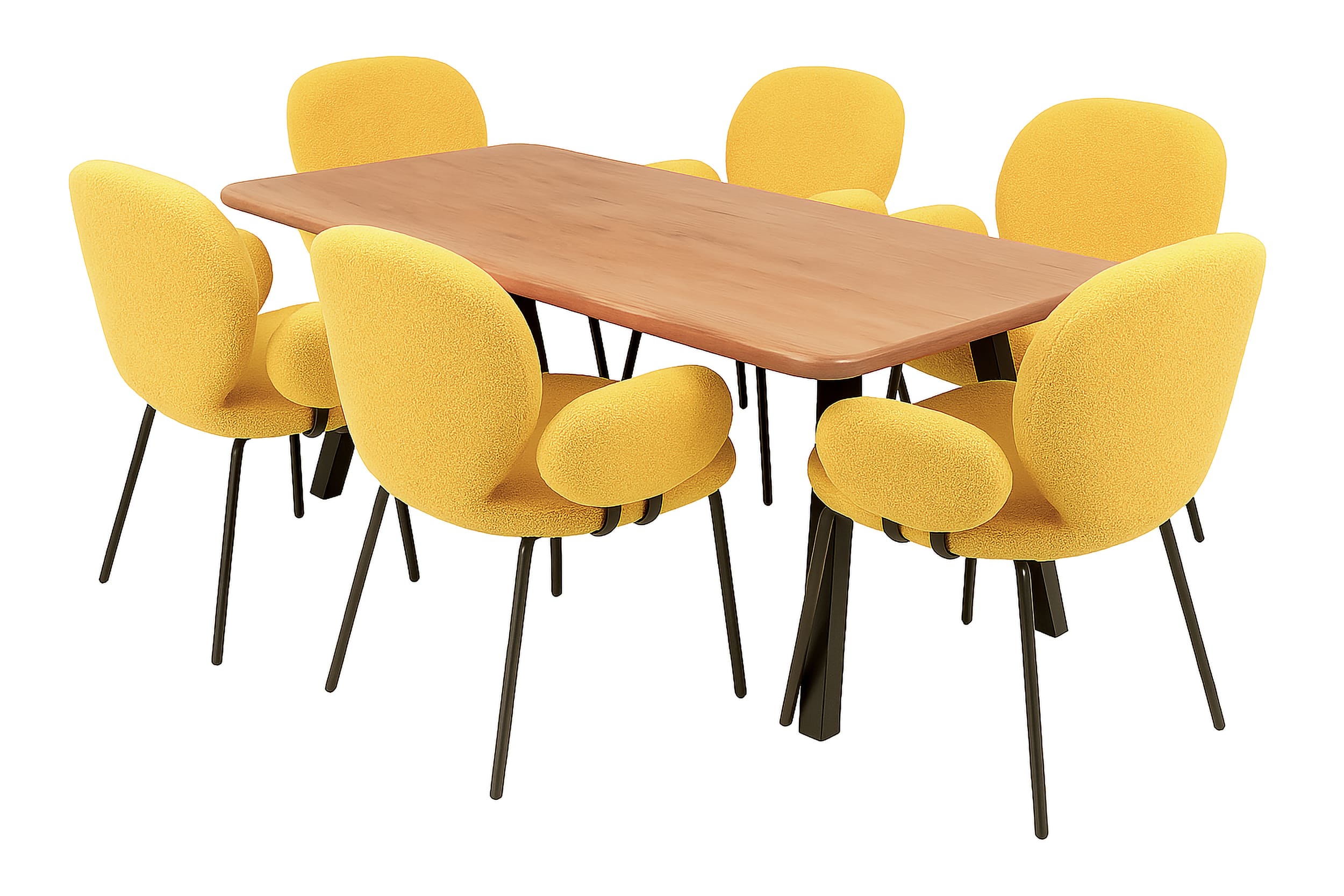 LC Home Essgruppe Lille 7tlg. Esstisch Akazie Metallgestell 215x100cm + 6 Esszimmerstühle Lille Gelb