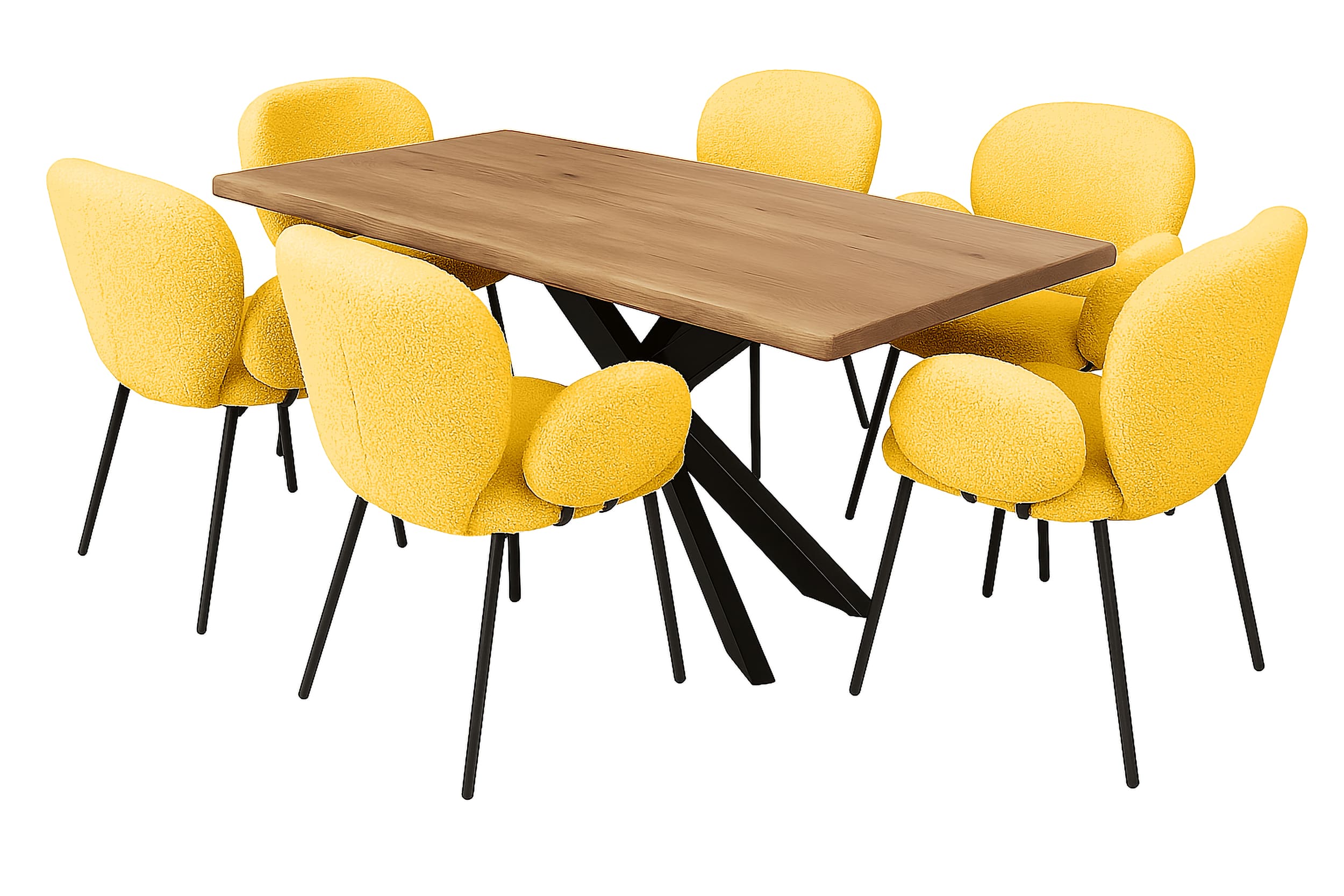 LC Home Essgruppe Lille 7tlg. Esstisch Wildeiche Stern-Gestell 180x90cm + 6 Esszimmerstühle Lille Gelb