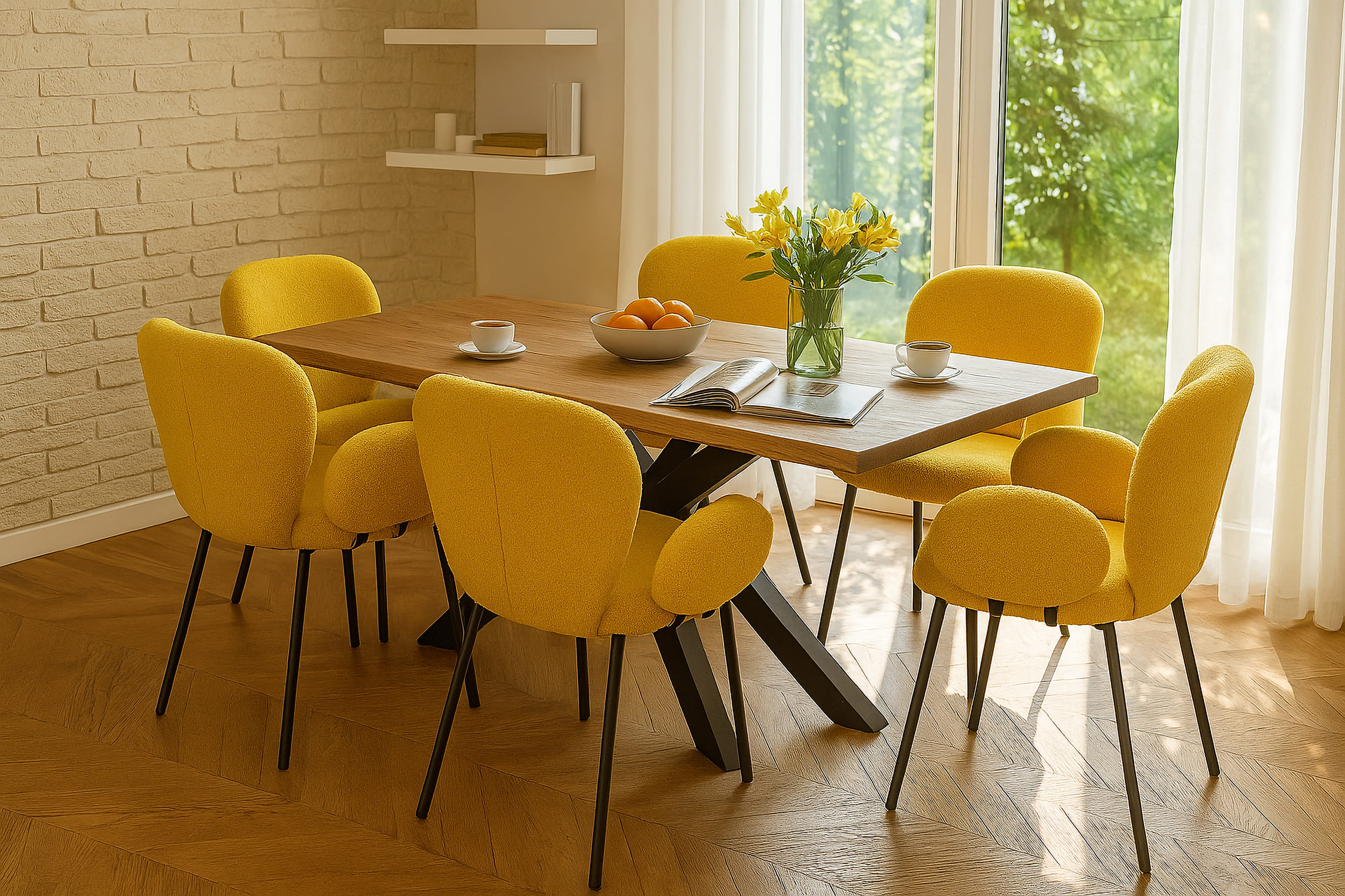 Eigenschaften "LC Home Essgruppe Lille 7tlg. Esstisch Wildeiche Stern-Gestell 180x90cm + 6 Esszimmerstühle Lille Gelb"