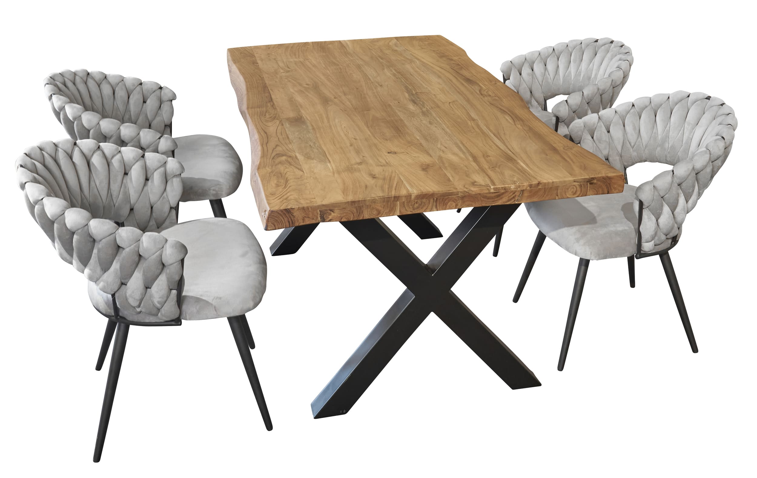 LC Home Essgruppe Nancy 5tlg. Esstisch Akazie X-Gestell 180x90cm + 4 Esszimmerstühle Nancy Taupe