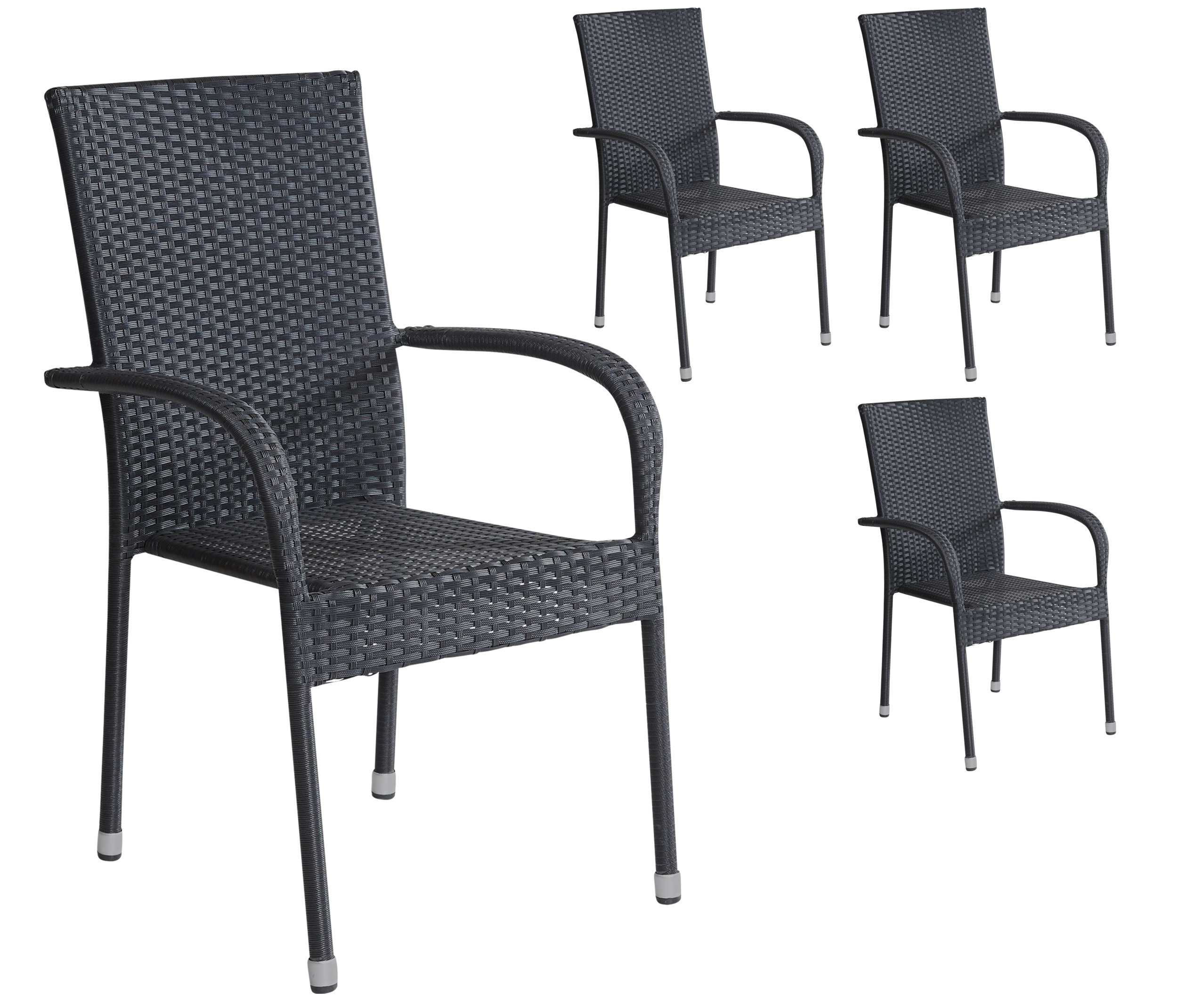 LC Garden »Lübeck« 4er Set Gartenstühle Polyrattan Schwarz Stapelstühle Gartensessel stapelbar