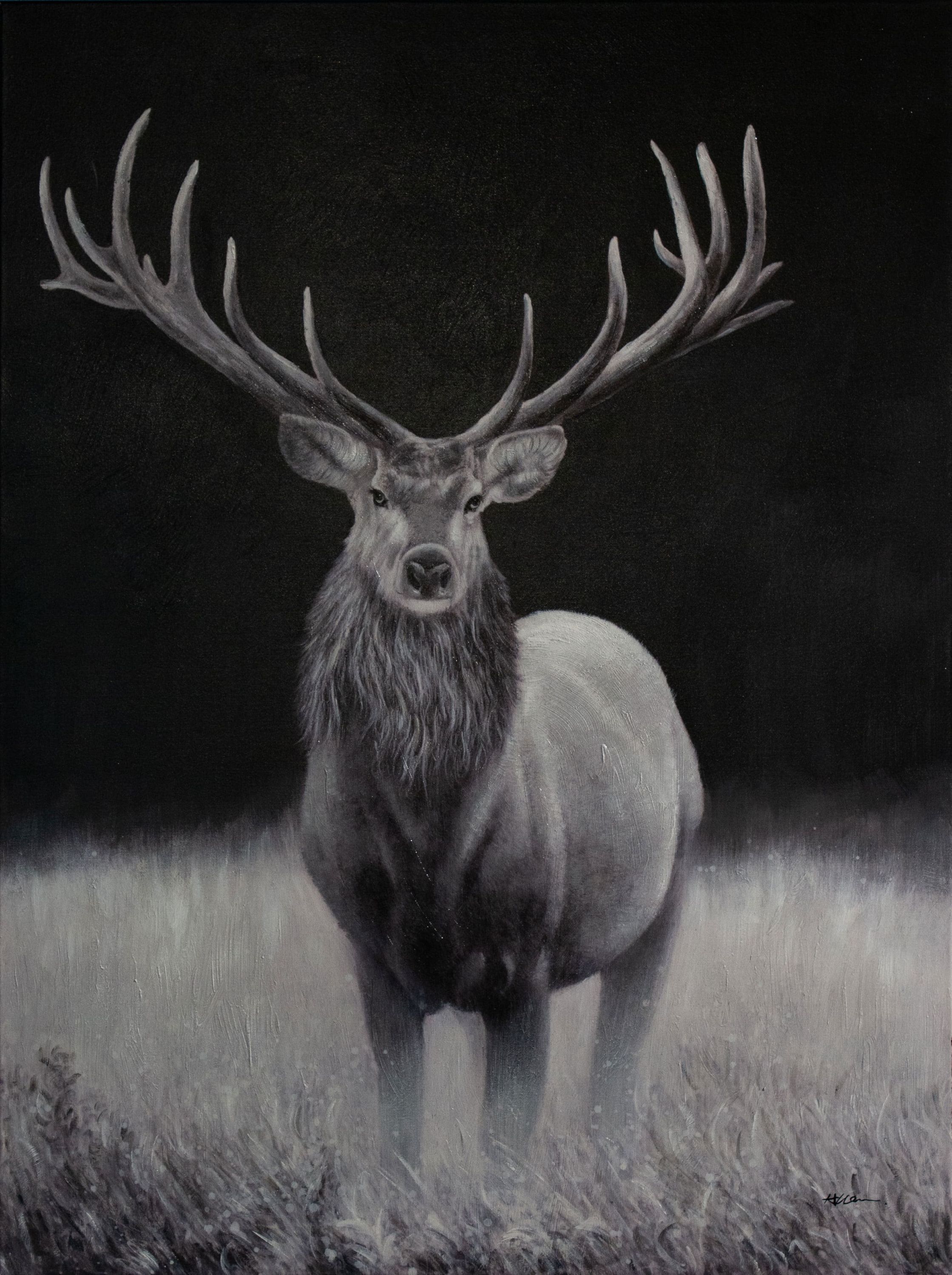 LC Home Designer Wandbild »Hirsch auf Wiese schwarz-weiß« handbemalt 90x120cm Ölbild