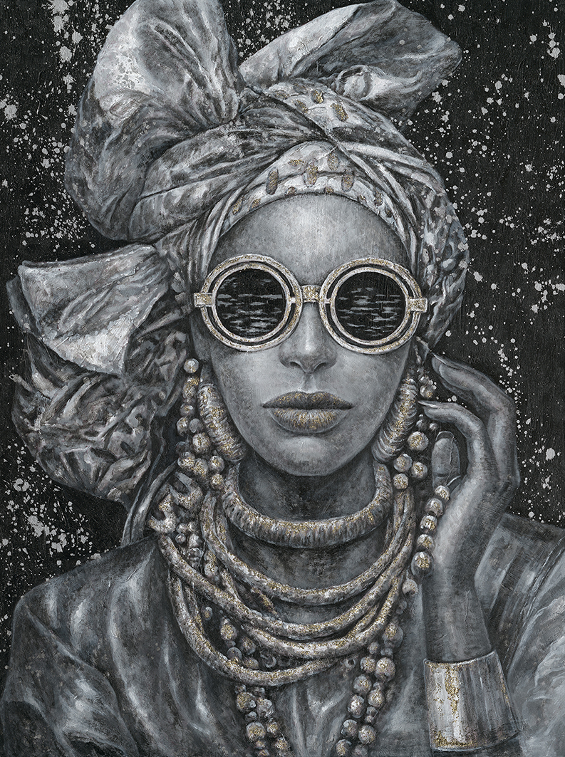 LC Home Designer Wandbild »Lady mit Kopfbedeckung schwarz-weiß« handbemalt 90x120cm Ölbild